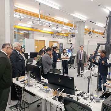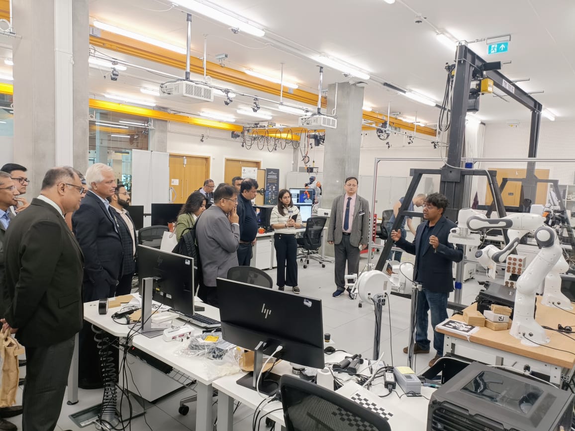 • Bayes Centre Visit The delegation, guided by Prof. Sethu Vijayakumar (Chair in Robotics and Director, Edinburgh Centre of Robotics), toured cutting-edge facilities in AI and robotics. Prof. Vijayakumar emphasized the Centre’s close industry collaboration, especially with SMEs, and its commitment to interdisciplinary innovation.